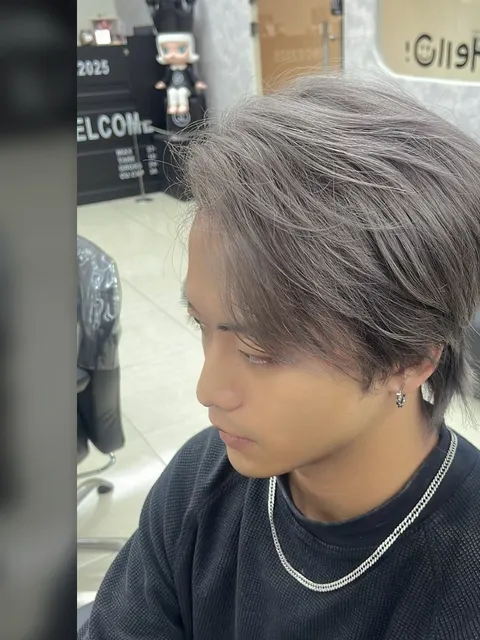 男生俐落的中長髮髮型,第一次嘗試漂退染灰色系,帥氣質感