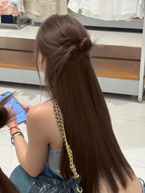 髮量中等、細軟髮質、輕微自然捲