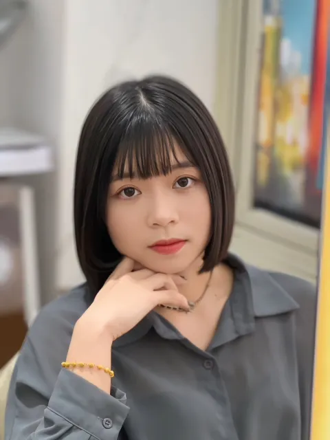 髮量中等、中等髮質、自然直