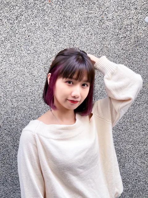 這款髮色的亮點在於「低調中帶驚喜的內層撞色設計」。 外層以自然深棕為主,提升整體質感與日常好整理度;內層則加入莓果紫紅色耳圈染,在撥髮或耳後時若隱若現,瞬間增加層次與個性。整體呈現出溫柔中帶點小叛逆的韓系氛圍,既不浮誇又很有記憶點。