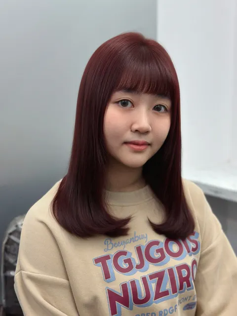 紫紅色偏紅的髮色 針對不喜歡頭髮長出來布丁頭很明顯的人以及適用在不想漂髮 卻想要有質感的髮色