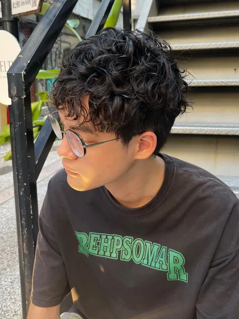 嬉皮感的捲度,抹上不黏膩捲髮慕斯,很好打理的髮型,不喜歡兩側推短短的有型男生必備。