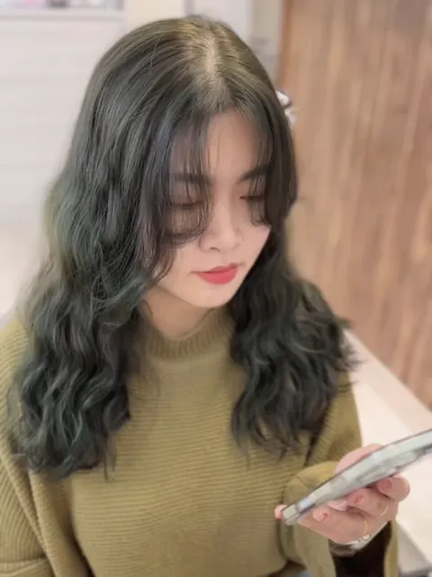 髮量中等、中等髮質、輕微自然捲