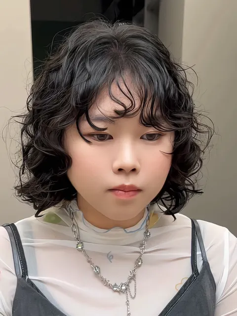 髮量中等、中等髮質、自然捲中等