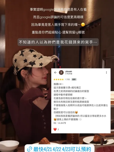 如果怕去用頭髮一直被拍照又不好意思拒絕 妳很適合來找我🤭 現場不拍任何照片 但非常歡迎大家回去如果有拍照可以傳給我~~ 因為不拍照沒作品發 發客人的真實評論💗✨