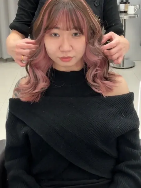 內層染加頭頂線條💫|粉色系列✨ #漂染 #線條染 #內層挑染